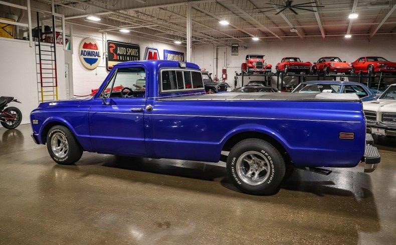 This 1971 Chevrolet C10 Fleetside pickup brings a sharp blend of vintage styling and tasteful customization. Finished in a striking custom blue over a clean black interior, this longbed, two-wheel-drive truck carries the unmistakable lines of a classic C10 with a refined, low-slung stance. It’s a smooth cruiser that turns heads without shouting for attention.
