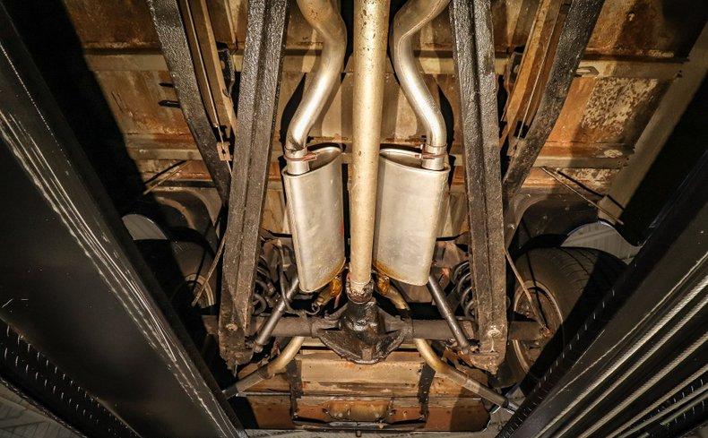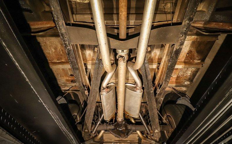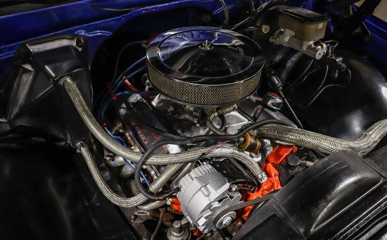Under the hood sits a strong-running 350ci V8 paired with an automatic transmission. The engine bay is dressed with an Edelbrock intake, 4-barrel carburetor, MSD spark plug wires, polished valve covers, and braided hose covers. A custom exhaust with polished tips adds the right soundtrack to this cruiser.