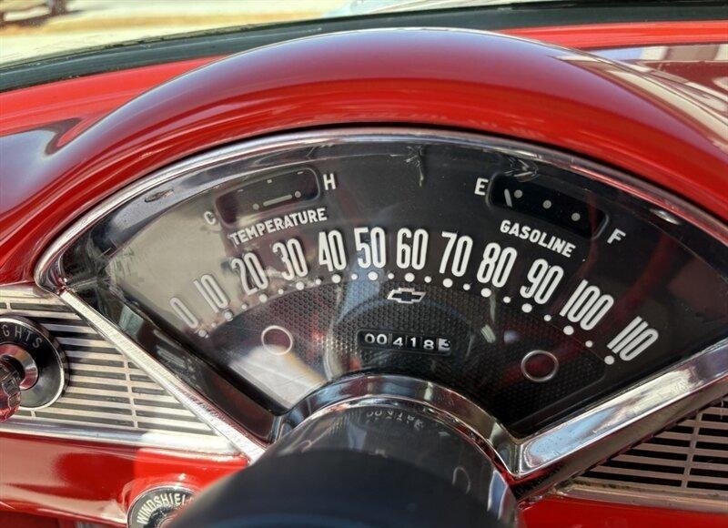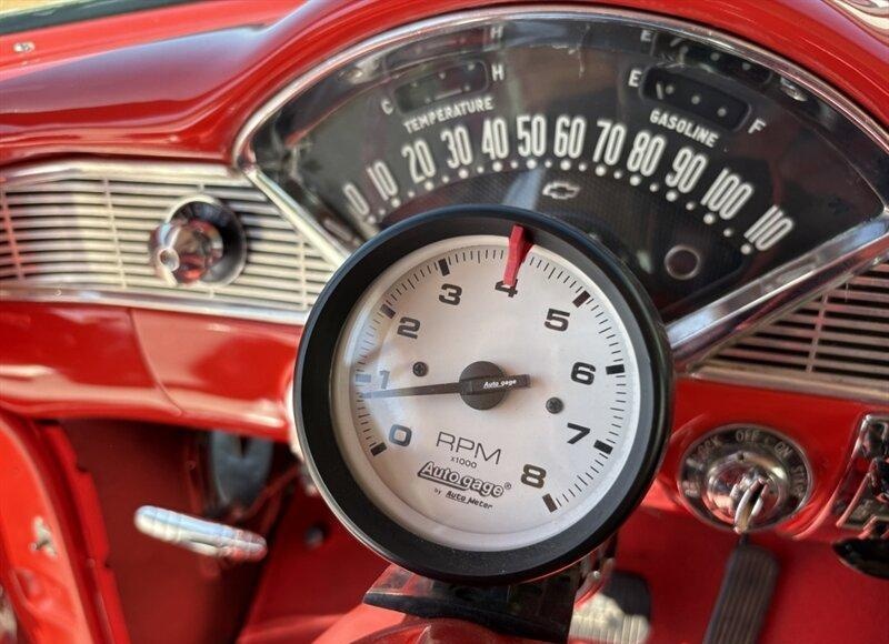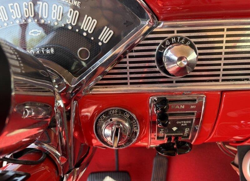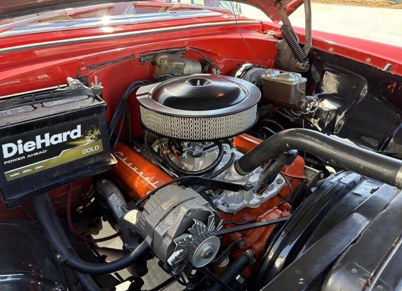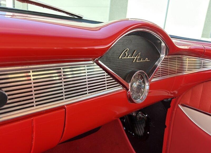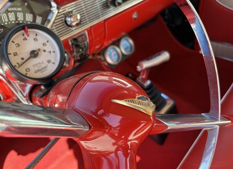 This '56 Chevrolet 210 Bel Air Tribute is a timeless classic, exuding the charm and style of a bygone era. Its sleek lines and iconic design make it an instant head-turner wherever it goes, a presence that can only be captured by 1950s American iron. Restored to its former glory, this 210 stands tall and proud, ready to captivate admirers with its timeless looks! Step inside, and you're greeted by a meticulously crafted interior that's as inviting as it is stylish. The matching red and white upholstery complements the exterior with elegance, and even the JVC cassette deck and the Centerline wheels capture the zeitgeist of day gone by. It's a sanctuary of 1950s nostalgia, perfect for cruising in style! Under the hood lies a 350V8 engine paired with a TH400 automatic transmission, delivering smooth and comfortable performance with every drive. Upgrades like the dual exhaust, power front disc brakes, and power steering enhance the driving experience, making this Bel Air a joy to drive anywhere, any time!