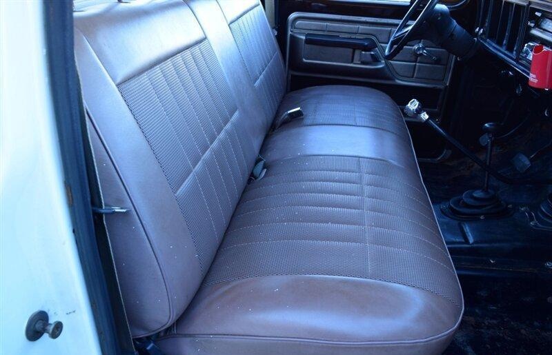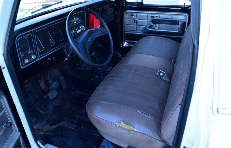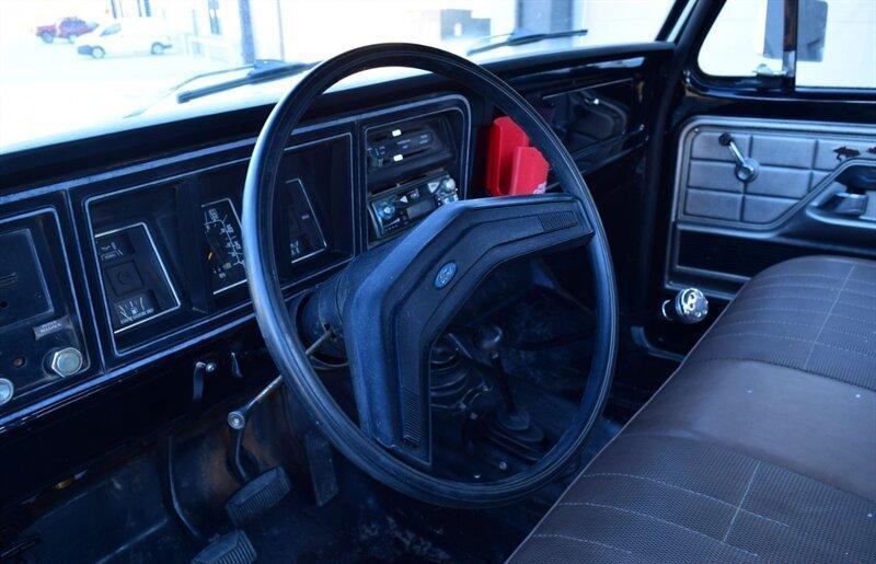 Interior: Functional usable as-is black and brown color combination silver door panel inserts some wear and tear missing carpet chipped paint on door panels damage on drivers side of bench seat